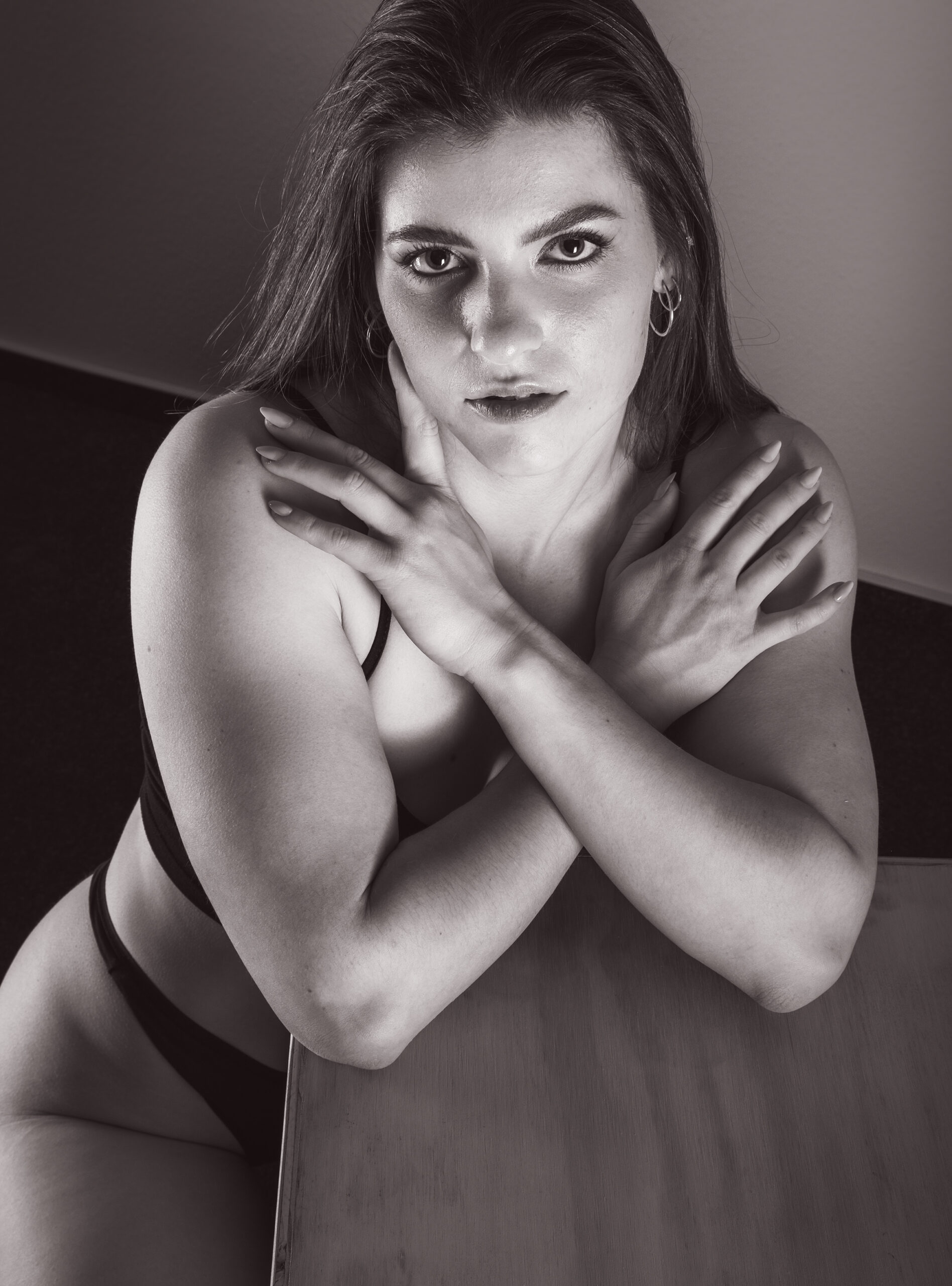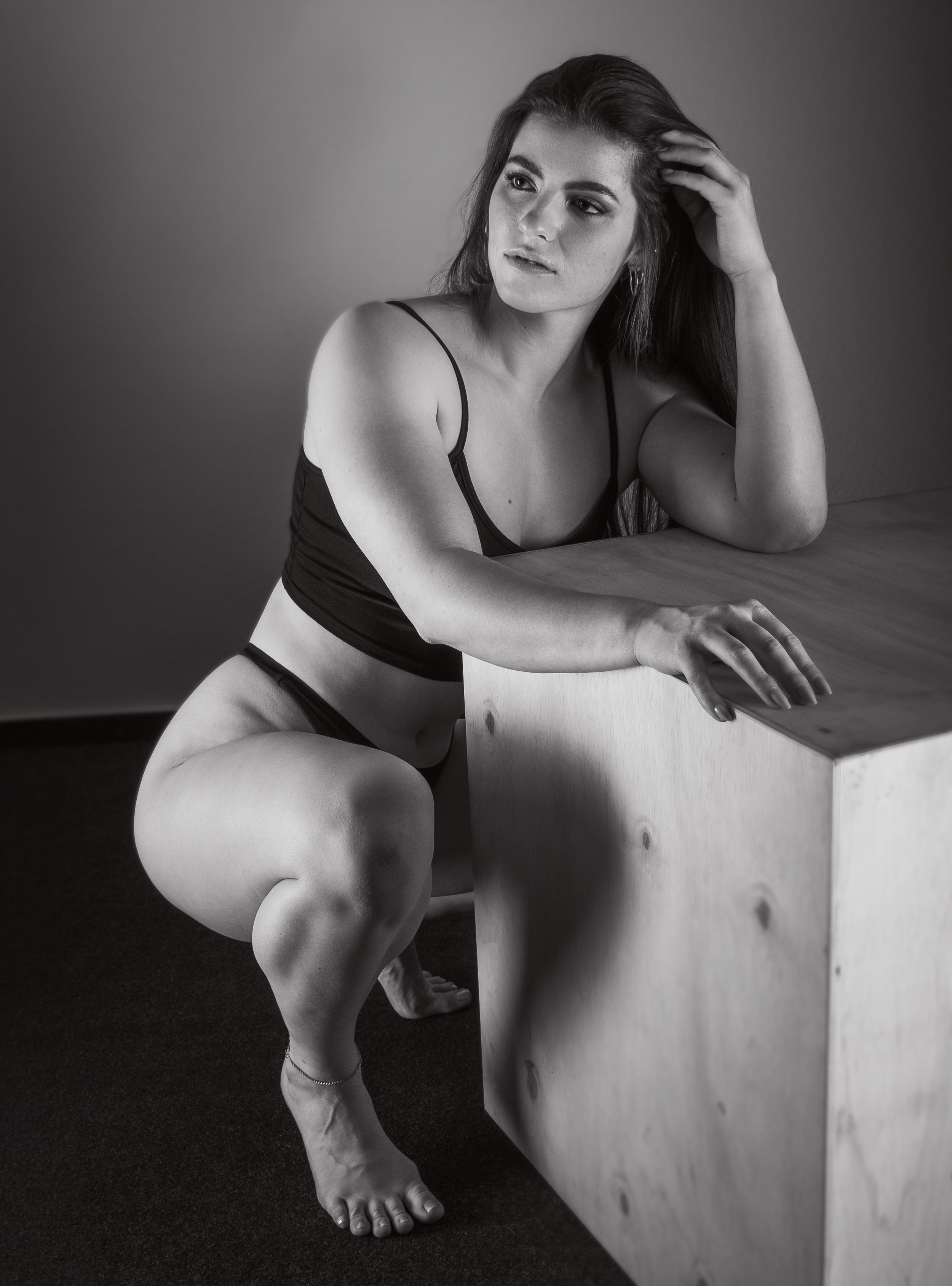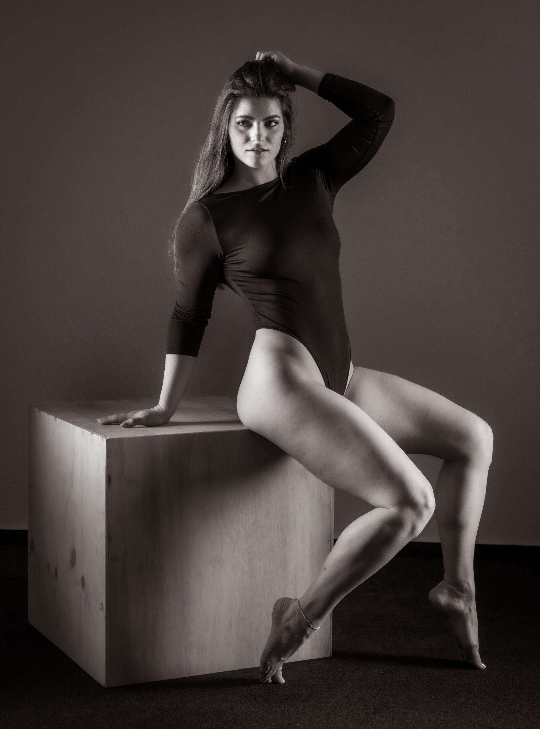 Im Studio entsteht mit Athletin Katja eine Serie klarer, kraftvoller und ausdruckstarker Portraits. Das Würfel‑Setup bringt Struktur und Spannung ins Bild, während Katjas Präsenz und Körperkontrolle den Fokus auf pure Athletik legen.